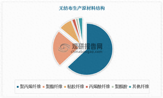 一、无纺布生产原材料以聚丙烯纤维为主,其次是聚酯纤维