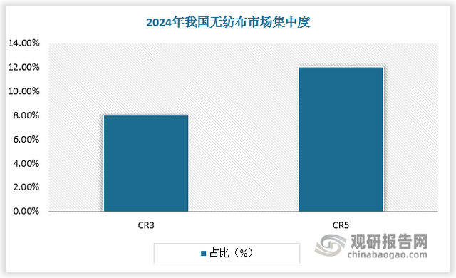 2020年,无纺布行业迎来了高速发展的黄金时期,行业规模以上企业利润总额达245.2亿元。行业繁荣景象之下,许多企业看到商机,纷纷涌入市场,但当中多为中小型企业,导致行业集中度相对较低,同质化竞争问题严重。根据数据,2024年我国无纺布CR3不足10%,CR5不足15%。