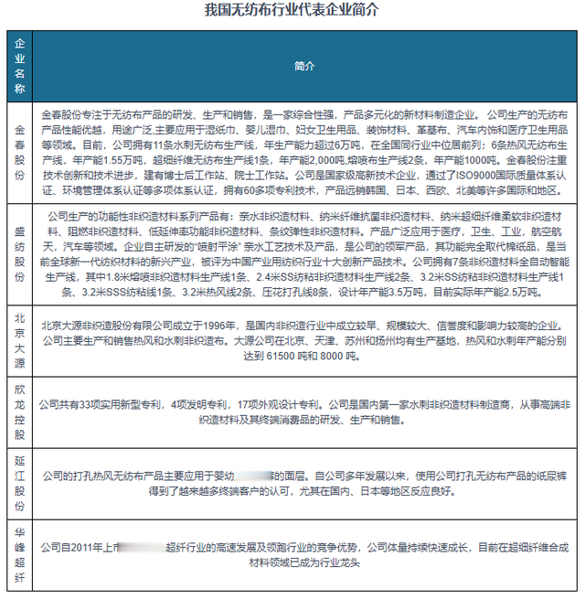 四、金春股份等企业稳占无纺布行业领先地位,未来市场将不断趋向集中